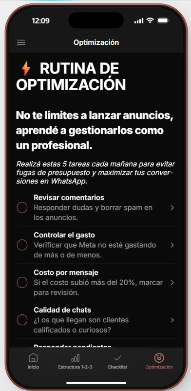 Usa Mini Mentor Ads por $17 USD. Si luego delegas el **Setup Profesional**, te descontaré los $17 de tu inversión. El aprendizaje te sale gratis.